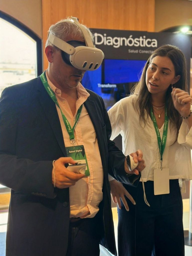 La compañía especializada en ofrecer soluciones de telemedicina (equipamiento y software) presentó su maletín diagnóstico y lentes de realidad virtual a través de los que mostraron el resto de sus propuestas pensadas y diseñadas para complementar y potenciar los sistemas tradicionales de atención. “Nuestro foco es acercar el cuidado médico a todas las personas sin importar dónde estén y hacerlo con equipamiento de calidad”, aseguró Roberto Rigo Bisso, CEO de Diagnóstica.